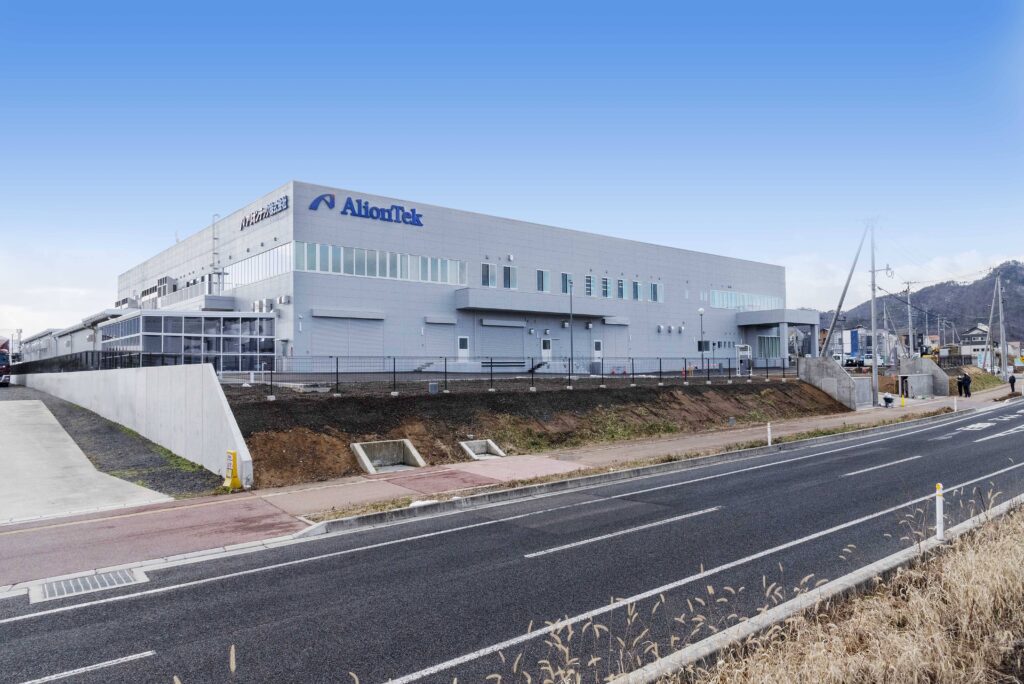 アリオンテック(株) 第4工場 所在地 山形市 構造 鉄骨造2階建て 敷地面積 10,196.96m² (3084.58坪) 延床面積 8,767.34m² (2652.12坪) 設計者 小野建設株式会社一級建築士事務所